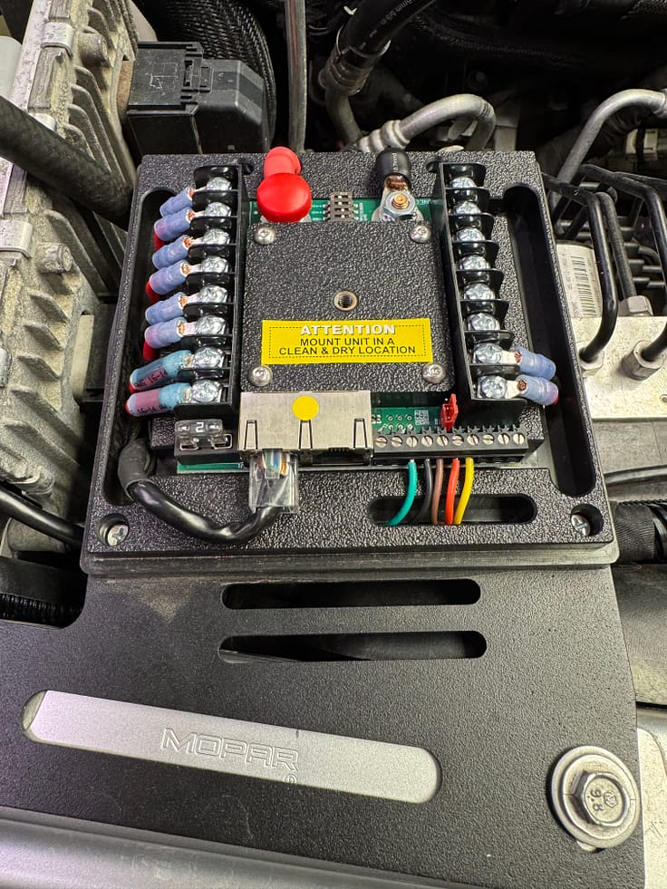 After much research, we decided to purchase an sPod BantamX 8-switch controller for our Jeep Camper. We chose this style of switch panel because large tactile switches are much easier to see, feel, and ultimately use when bouncing around off-road. Red backlighting was an easy decision too as it is the least offensive to your night vision while driving. We wanted the BantamX because it has overcurrent protection for each circuit, auxiliary control inputs, minimal wiring into the cab, a nice stock-like appearance, and a good reputation for reliability. Furthermore, we might want a 2nd control panel at the rear so we can turn lights on/off from the camper at night, and the sPod can accommodate this.