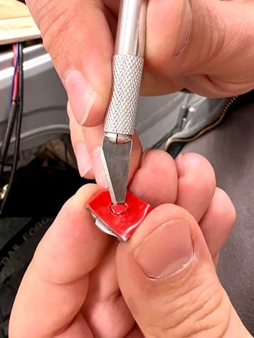 We then cut the centers out of the holes using an X-Acto knife so the screws can pass through to the threads.