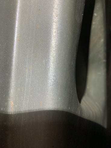 As a result of some careful measuring with a piece of scrap ground wire bent to shape, the location of this recess was determined with enough accuracy to drill the fenders: