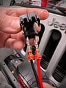 After that, take the freshly crimped ends, apply some dielectric grease to the boots and slip them into the connectors like this:
